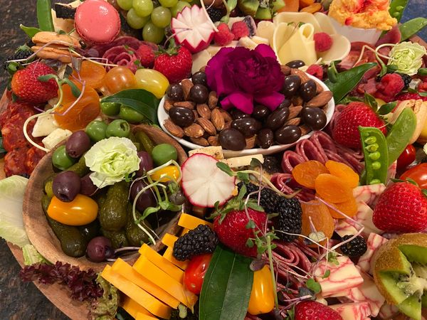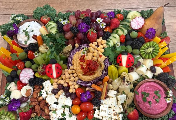 Artisanal boards designed to impress. Artfully arranged with cured meats, cheese, nuts, vegetables, organic fruit, relish, dips, dried apricot & chocolate